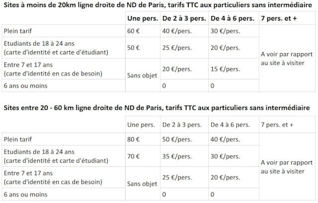 Ce sont des tarifs de prestation intellectuel du Fournisseur. Seuls les écouteurs y sont inclus. Le temps de visite est d'une heure et demie, deux heures pour des visites de quartiers.